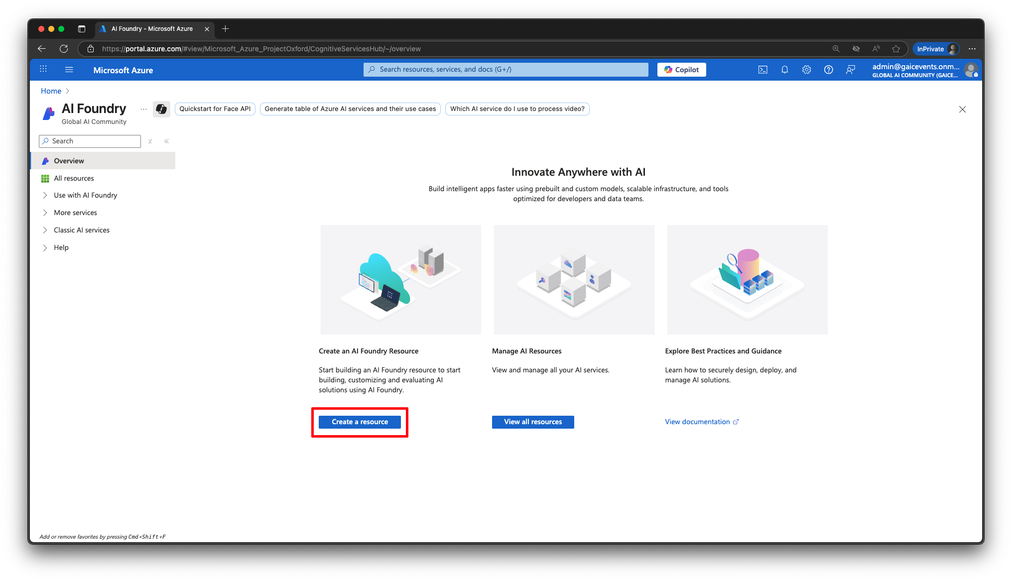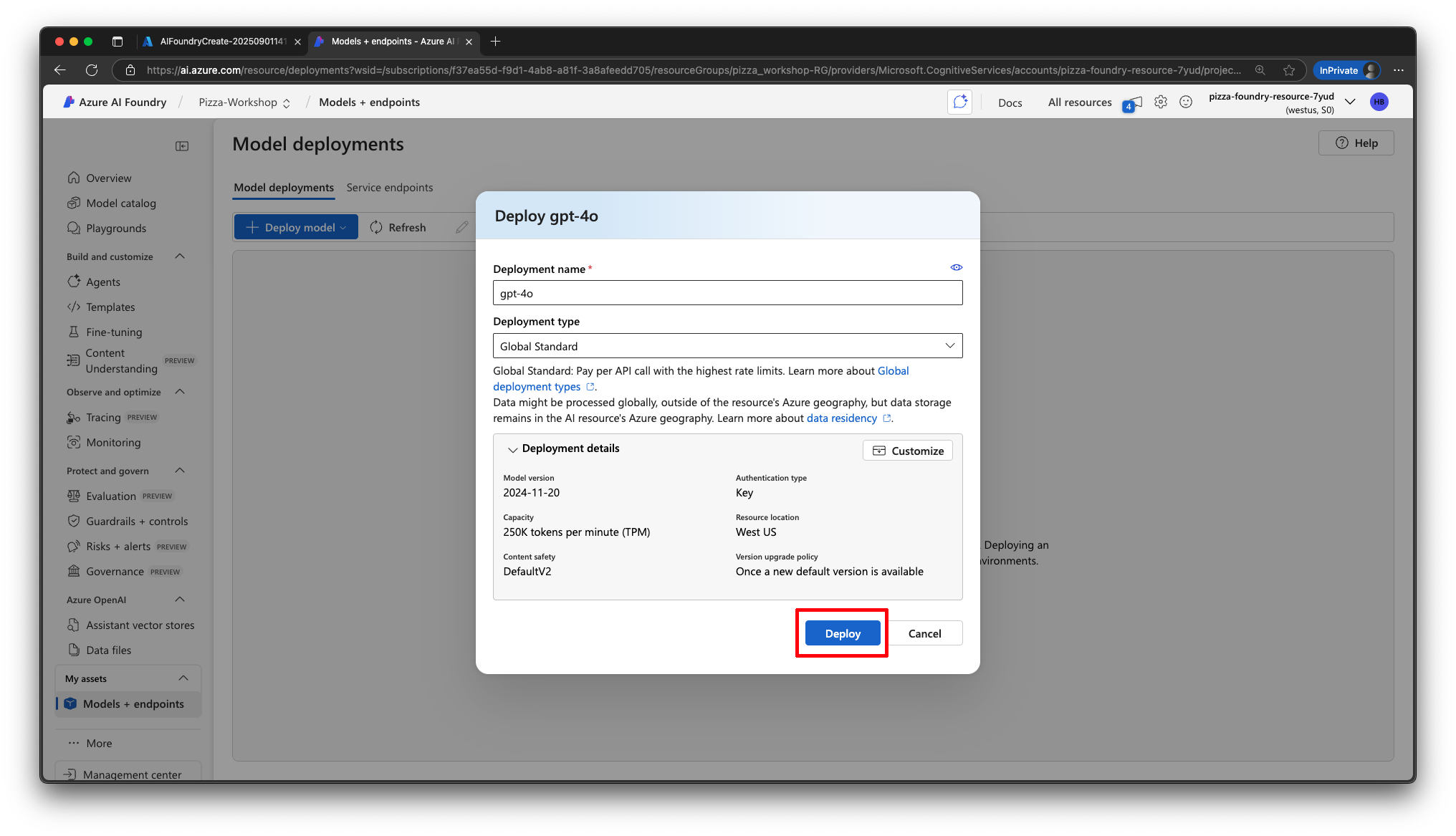 In this section, you will set up the Microsoft Foundry resource and deploy your first model.