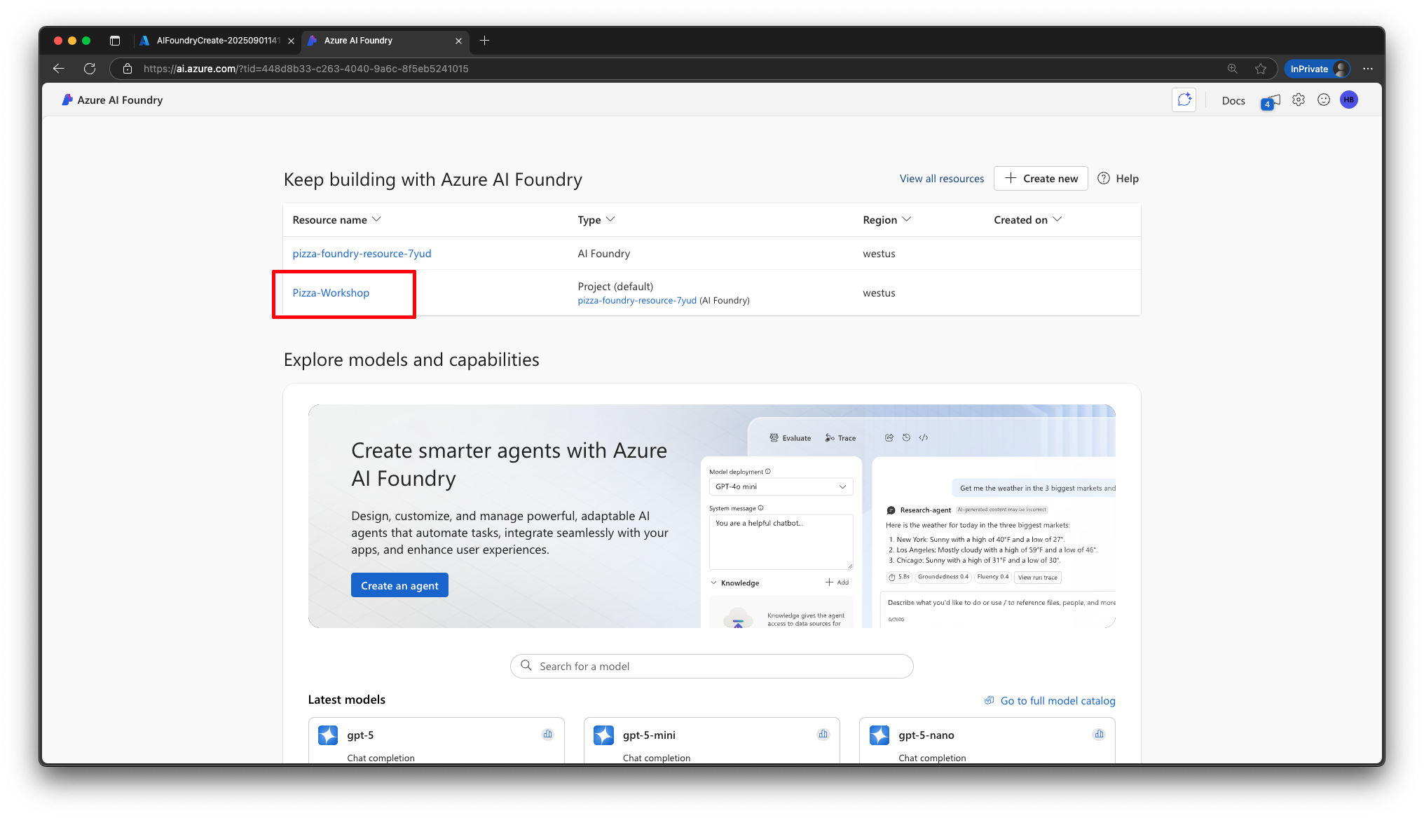 Your Azure environment is now ready for building the PizzaBot agent in the next chapters.