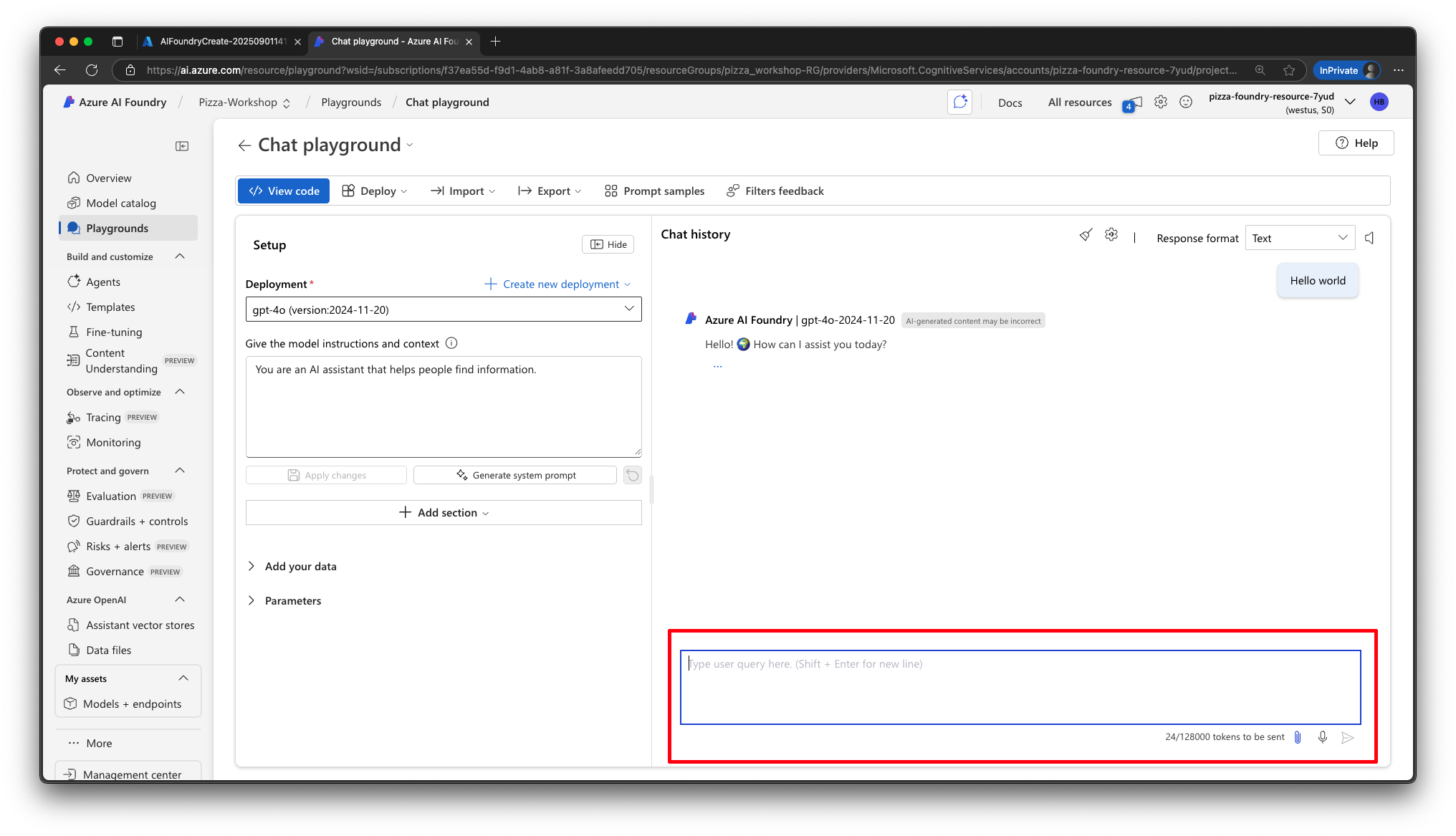 Hello worldYou should see a response from the gpt-4o model. 🎉